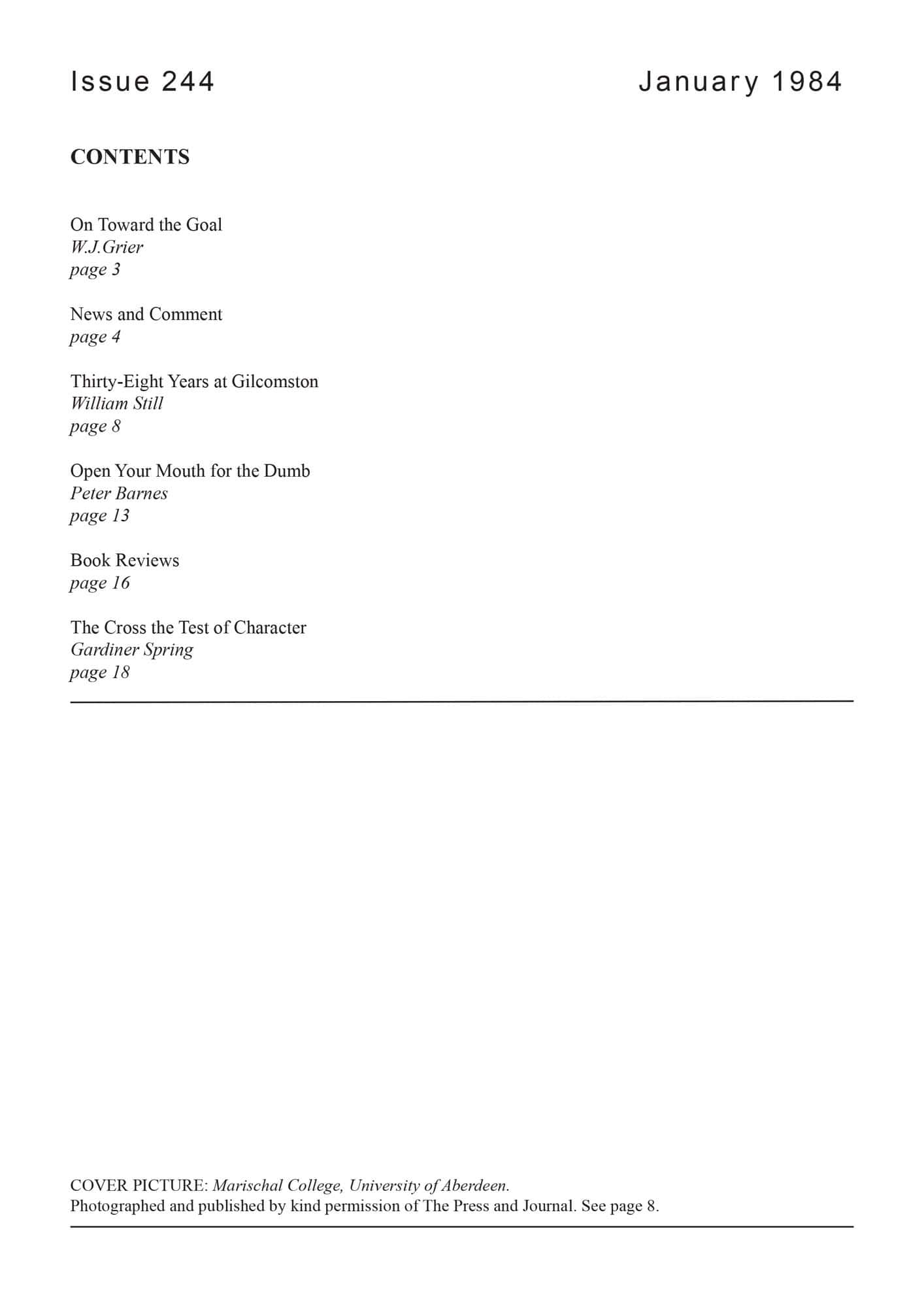 | Thirty Eight Years at Gilcomston — Still, William | 8-16 |