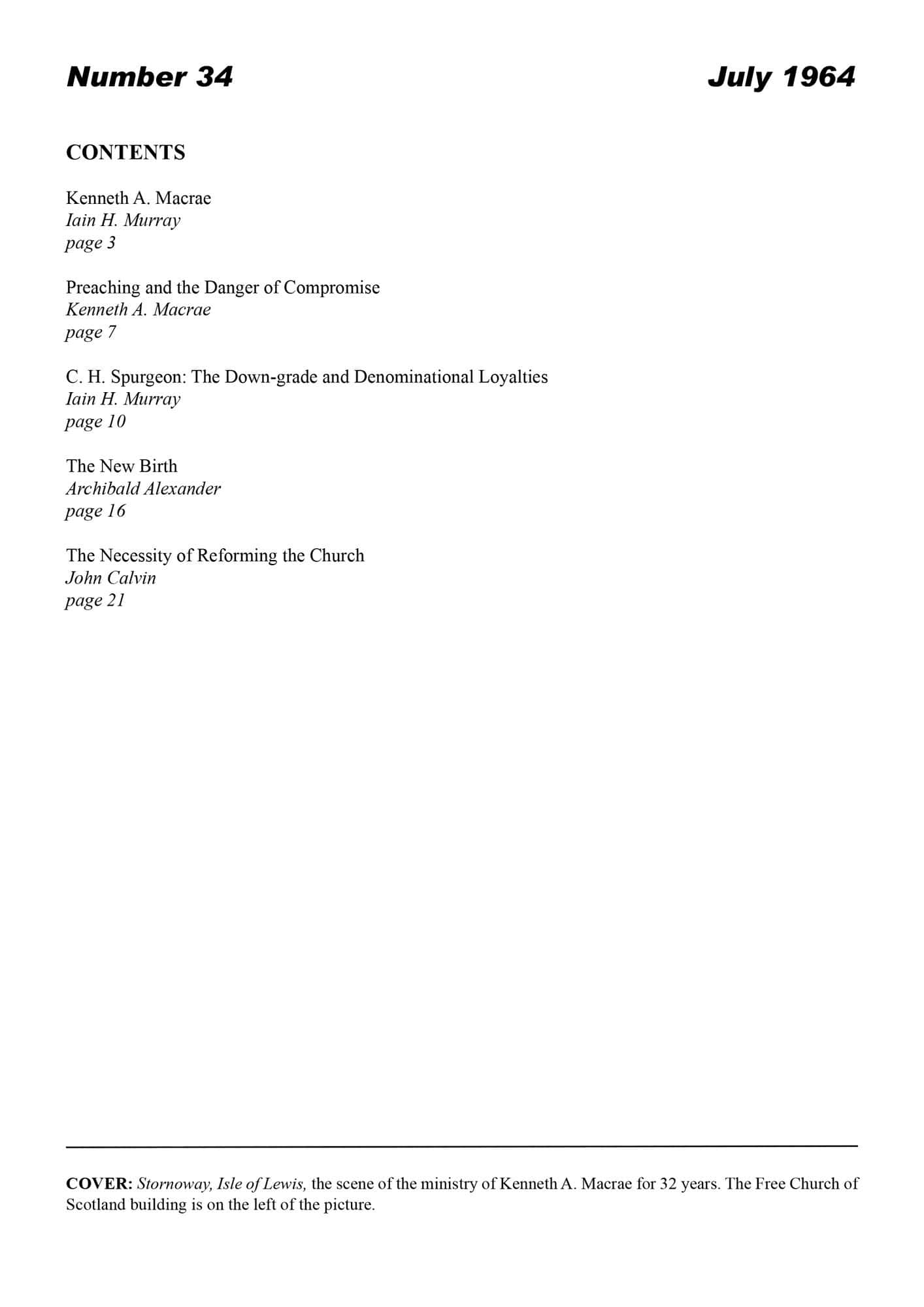 | C. H. Spurgeon: the Down-Grade and Denominational Loyalties — Murray, Iain H | 14-24 |