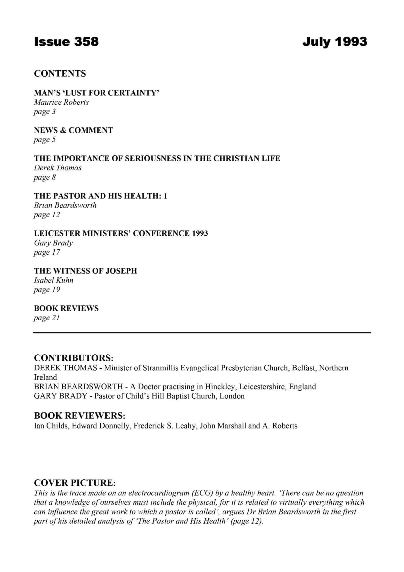| Pastor and His Health (1) — Beardsworth, Brian | 14-20 |