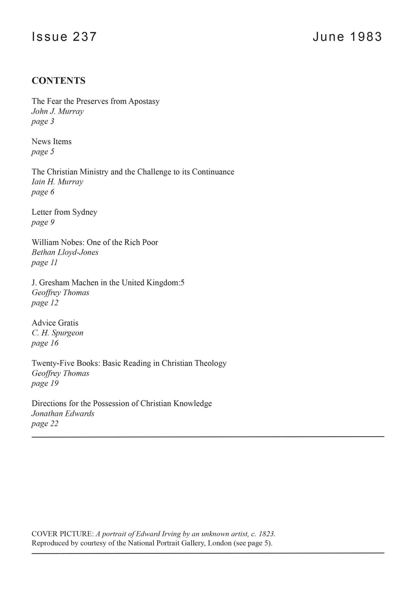 | Christian Ministry and the Challenge to its Continuance (1) — Murray, Iain H | 6-10 |