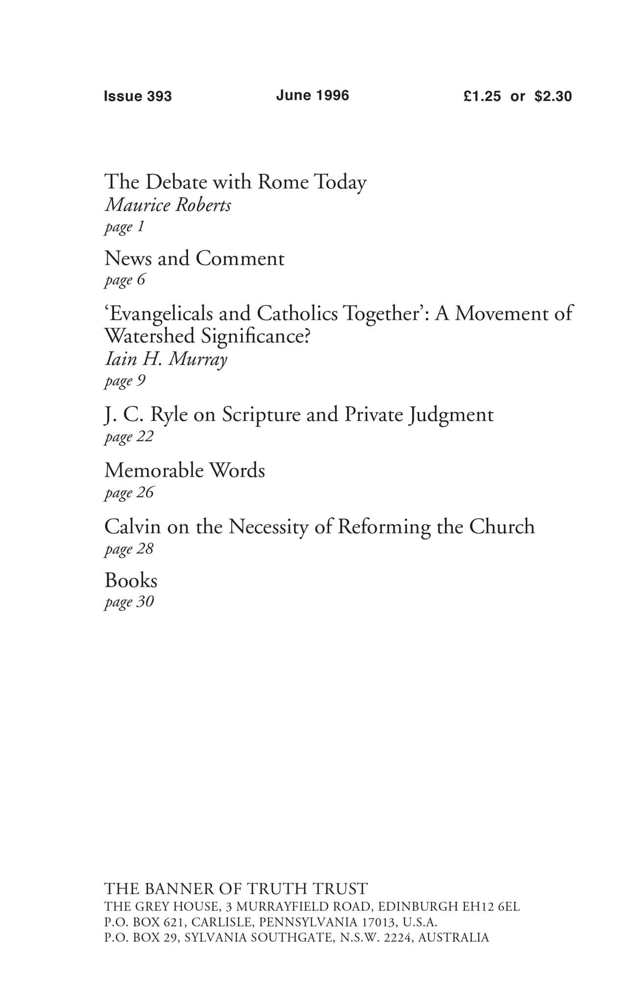 | Evangelicals and Catholics Together: A Movement of Watershed Significance? — Murray, Iain H | 9-21 |