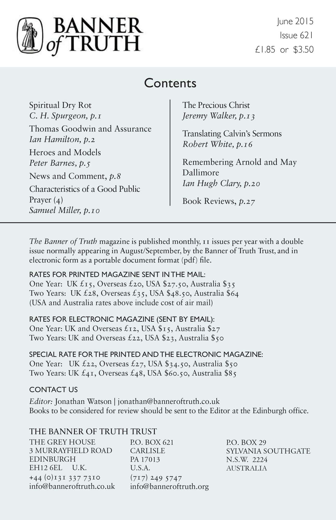 Subscribe to the Banner of Truth Magazine for 11 edifying issues each year (including summer double issue).