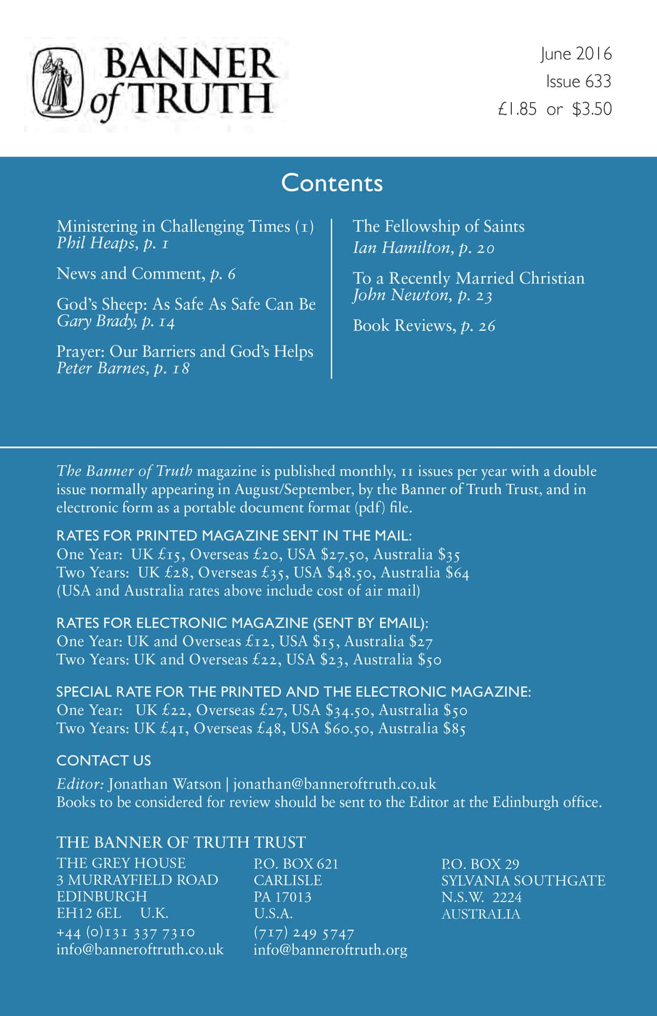 Subscribe to the Banner of Truth Magazine for 11 edifying issues each year (including summer double issue).