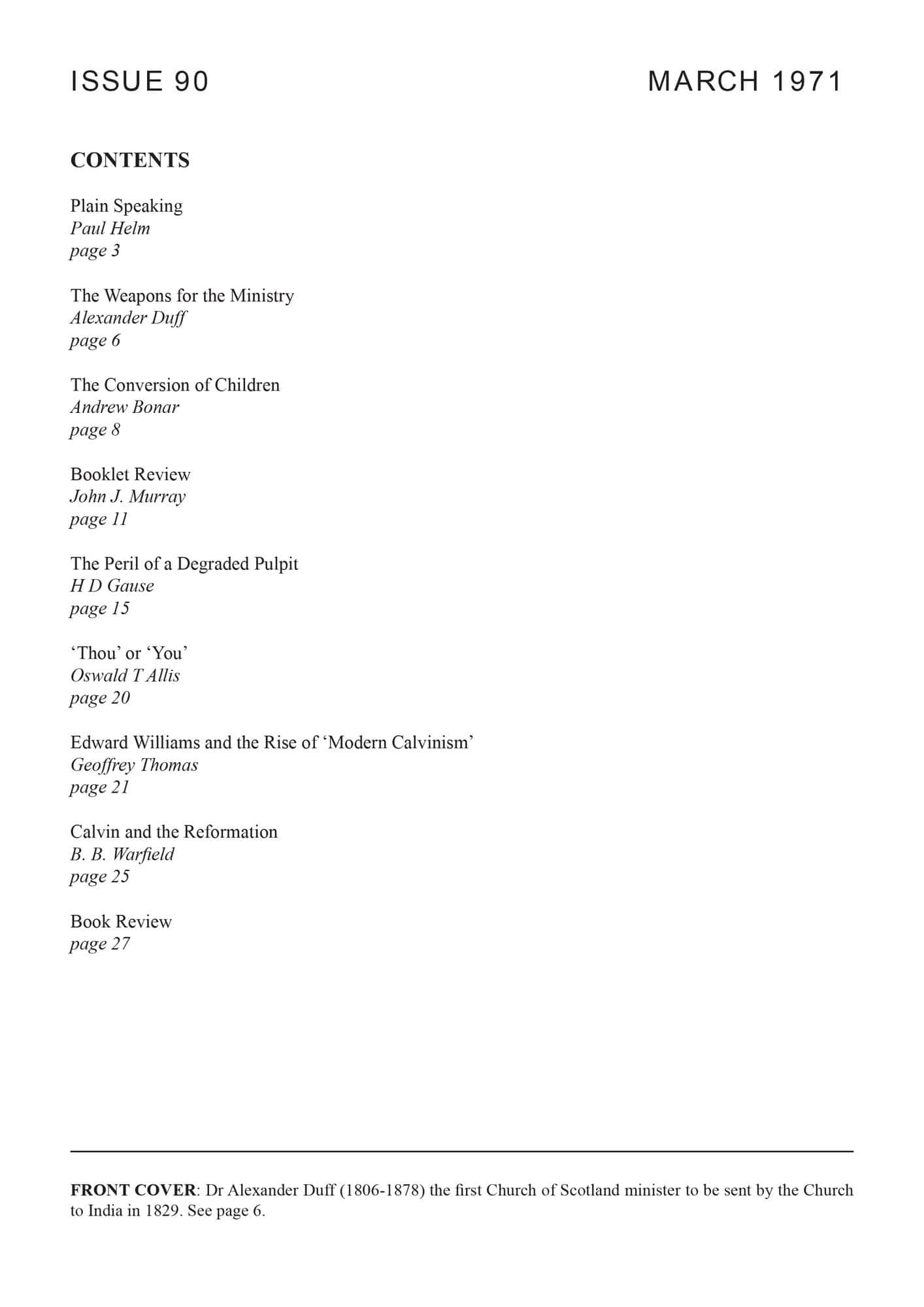| Weapons for the Ministry — Duff, Alexander | 6-9 |