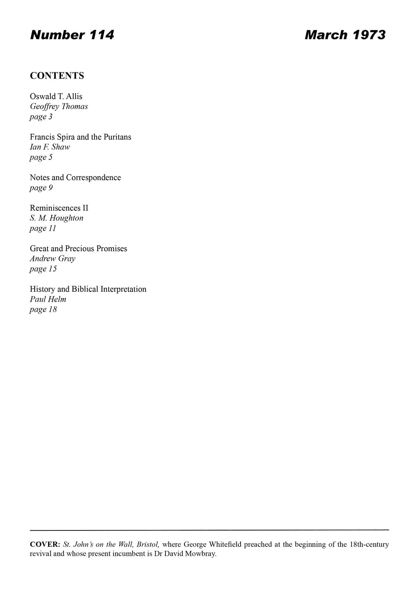 | Francis Spira and the Puritans — Shaw, Ian F | 4-10 |
