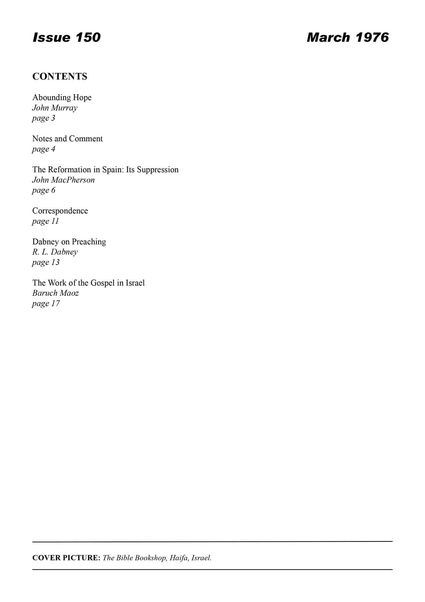 | Reformation in Spain — MacPherson, John | 6-14 |