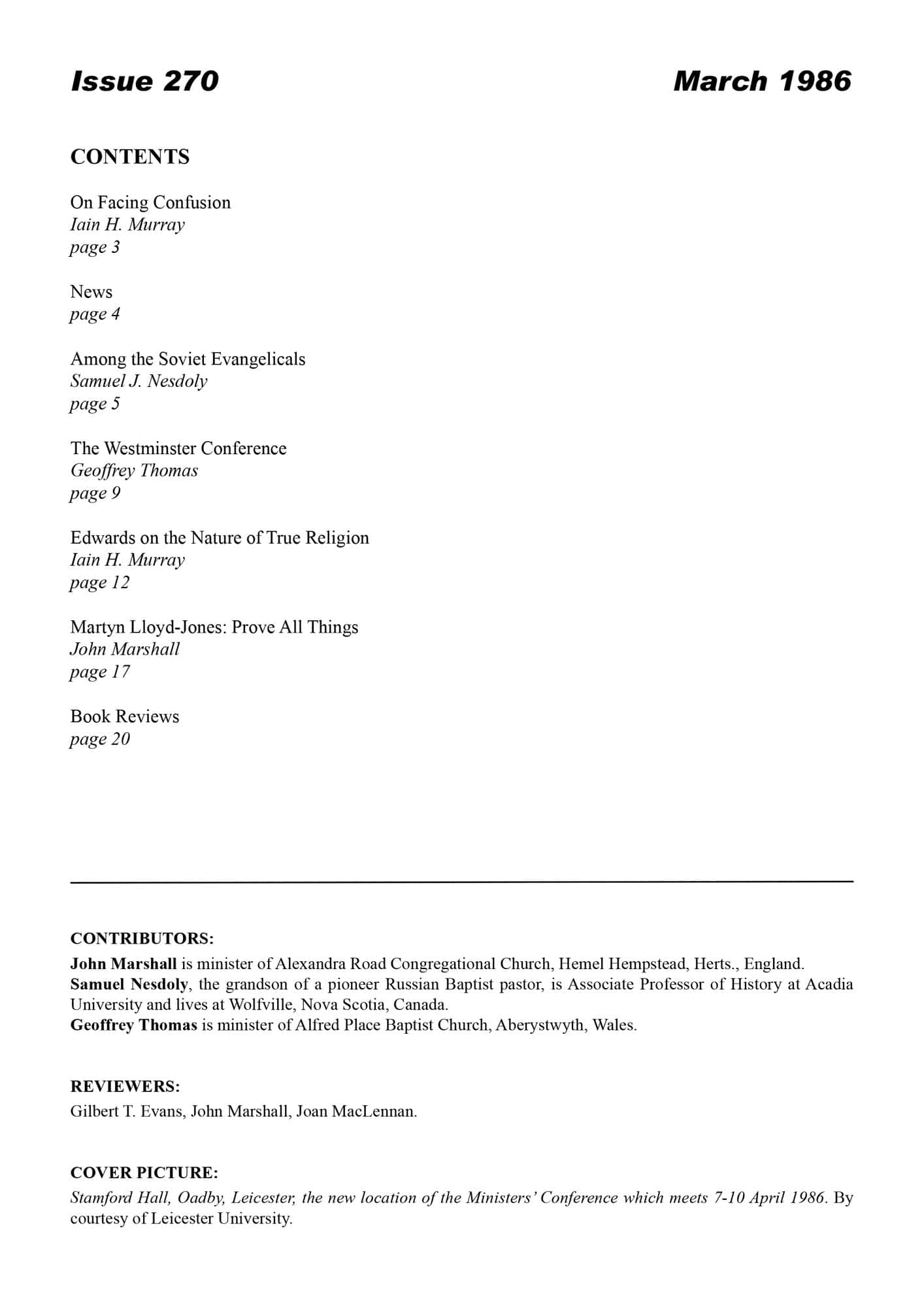 | Westminster Conference 1985 — Thomas, Geoffrey | 10-15 |