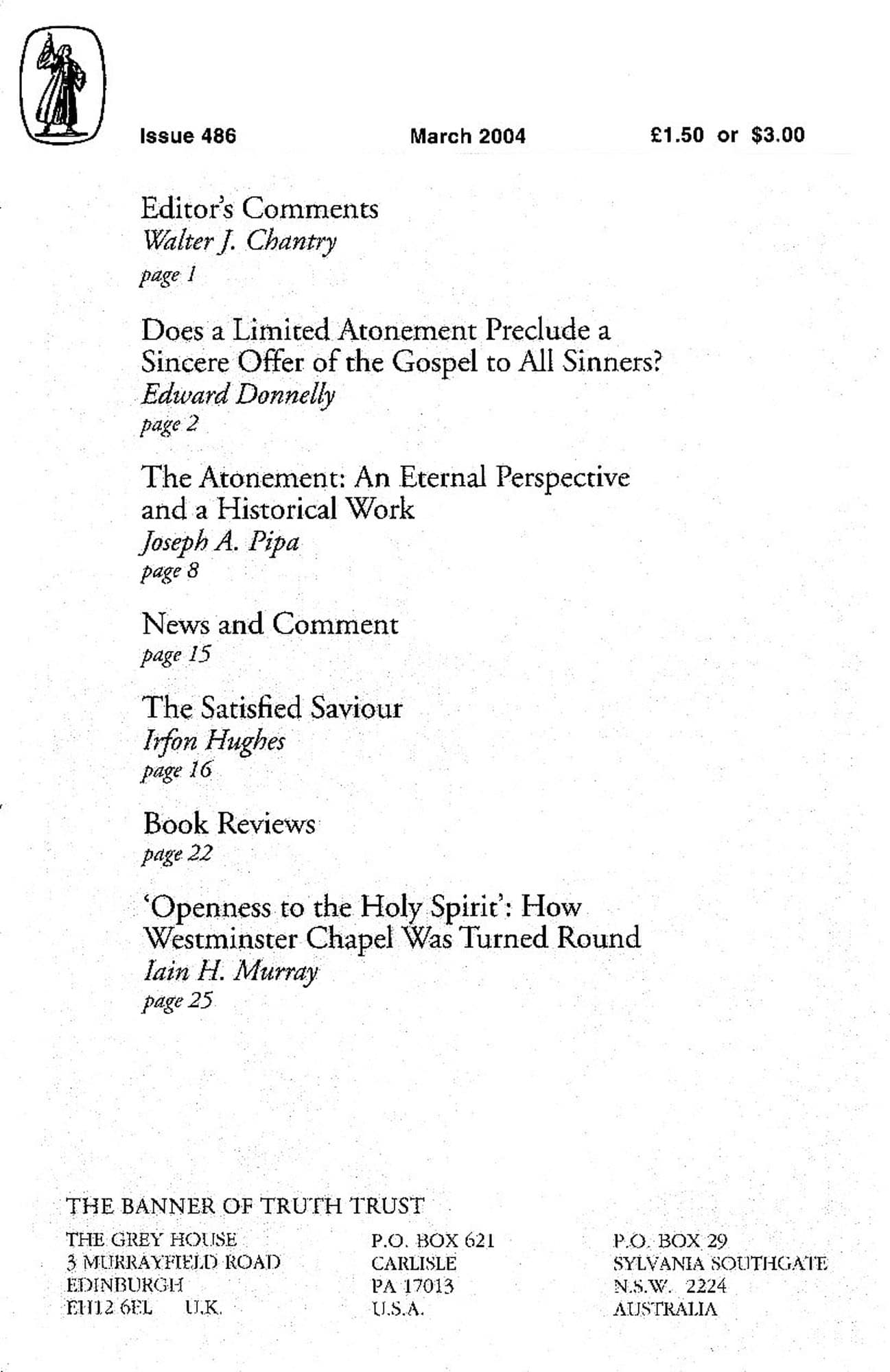 | Does a Limited Atonement Preclude a Sincere Offer of the Gospel to All Sinners? — Donnelly, Edward | 2-7 |