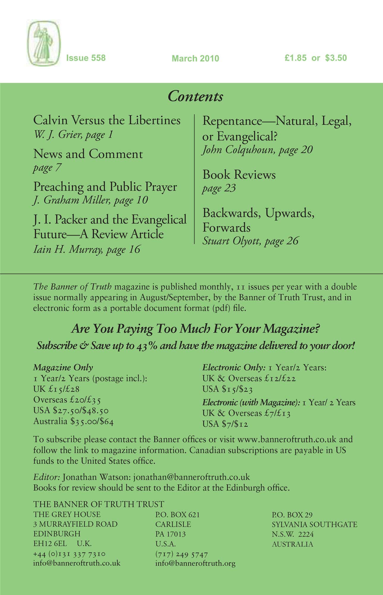 Subscribe to the Banner of Truth Magazine for 11 edifying issues each year (including summer double issue).