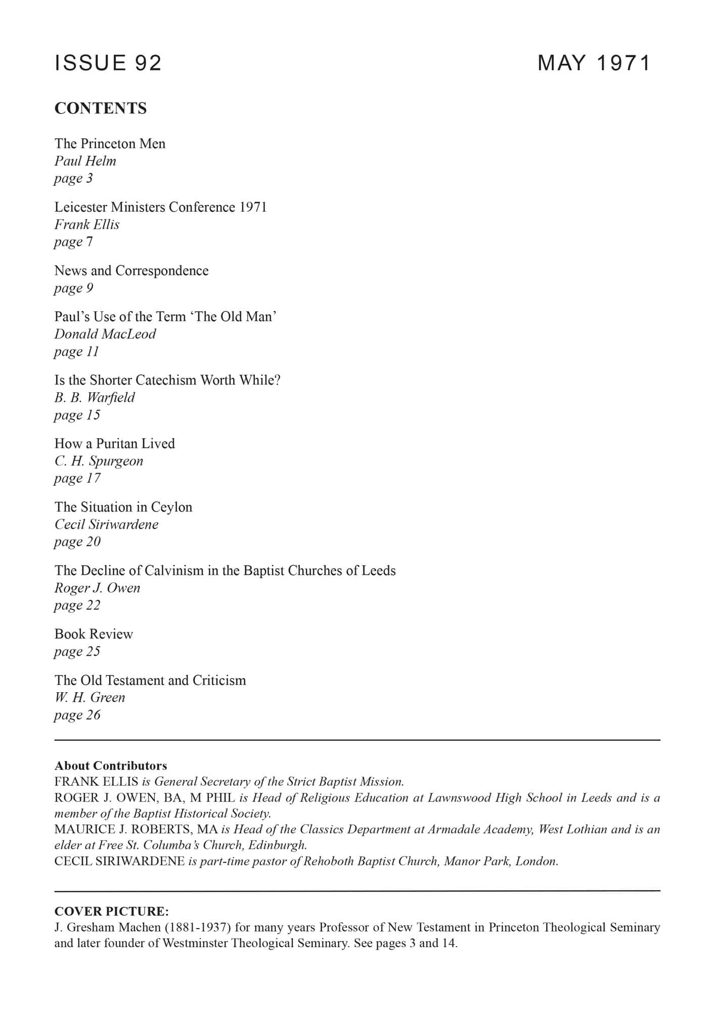 | Decline of Calvinism in the Baptist Churches of Leeds — Owen, Roger J | 31-35 |