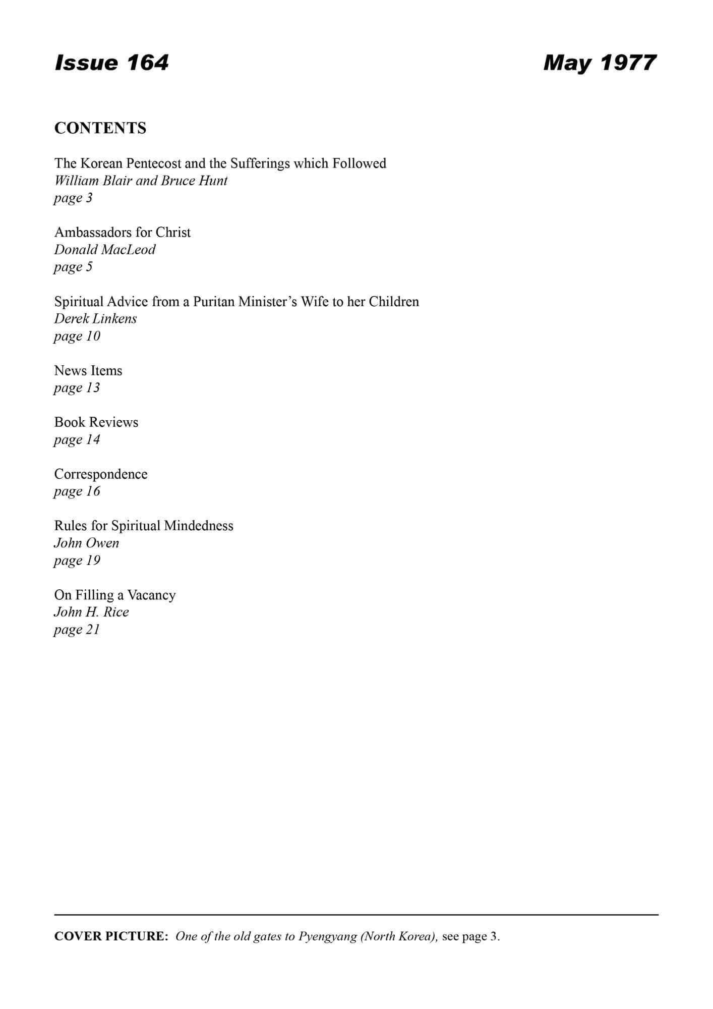 | Korean Pentecost and the Sufferings which Followed — Blair, William | 1-4 |