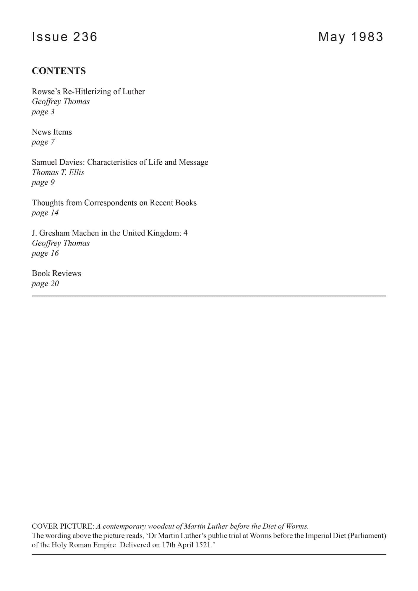 | Rowse’s Re-Hitlerizing of Luther — Thomas, Geoffrey | 1-7 |