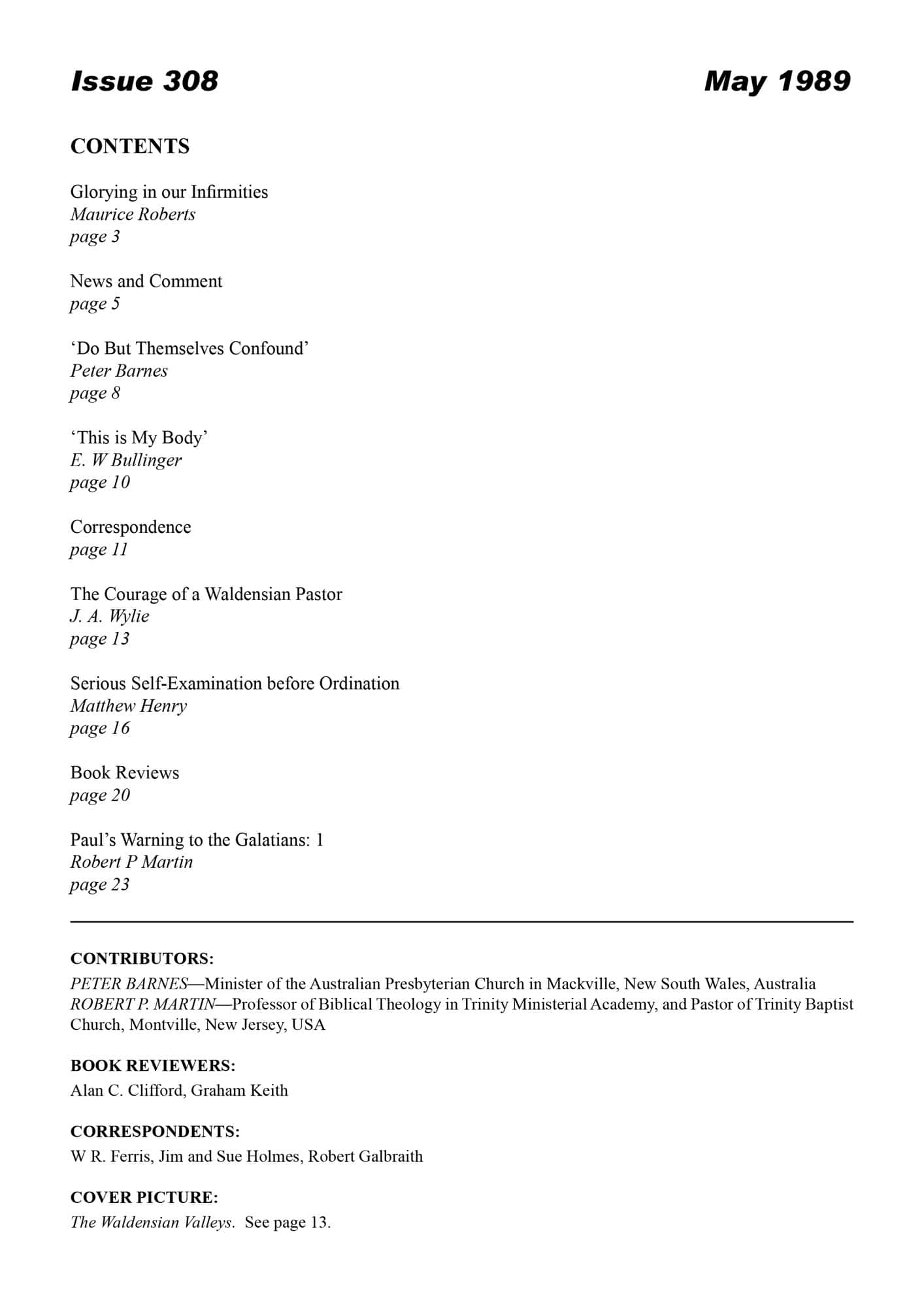 | Glorying in Our Infirmities — Roberts, Maurice J | 1-4 |