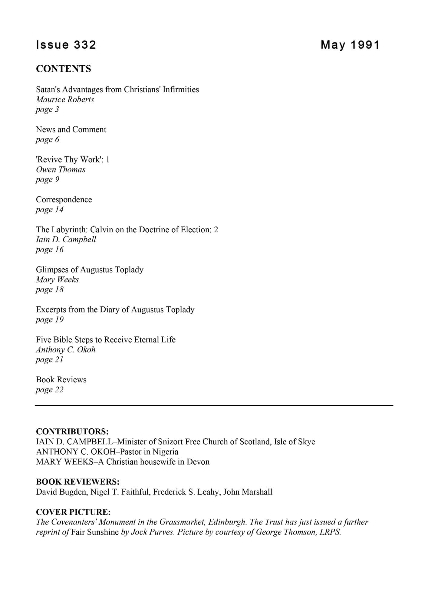| Labyrinth: Calvin on the Doctrine of Election (2) — Campbell, Iain D | 18-20 |