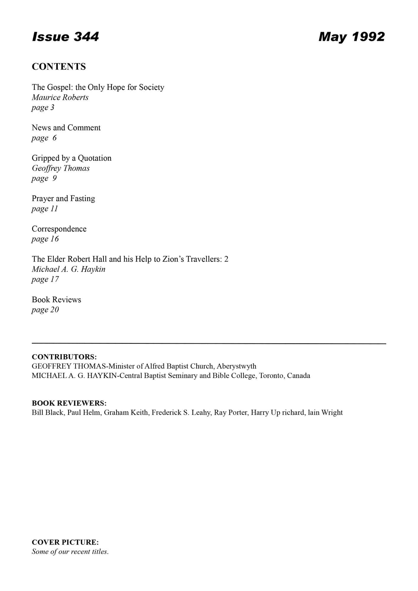 | Gospel: the Only Hope for Society — Roberts, Maurice J | 1-5 |