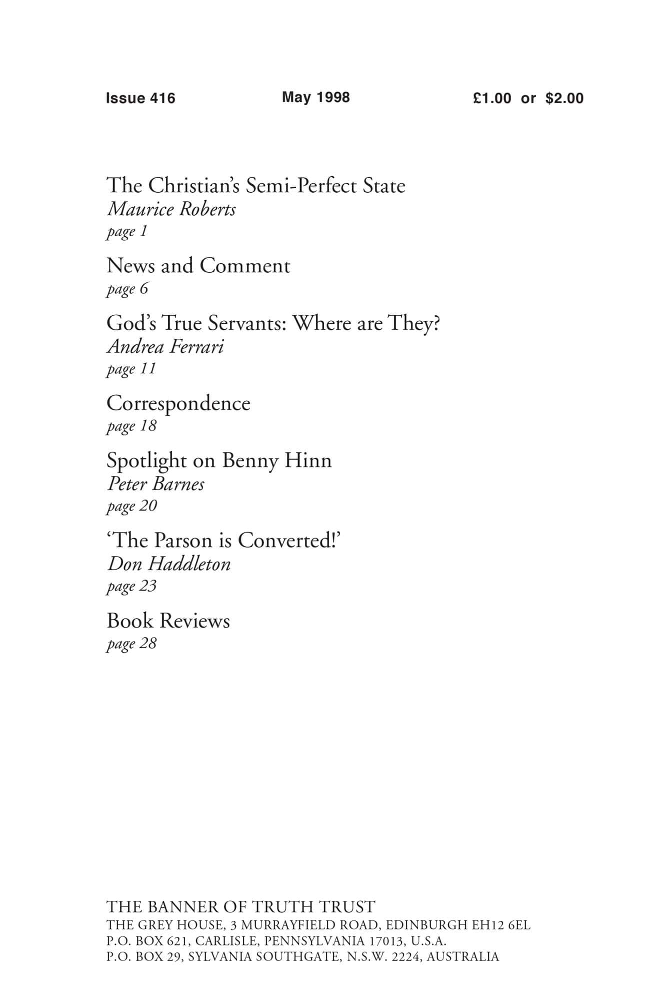 | Spotlight on Benny Hinn — Barnes, Peter | 20-22 |