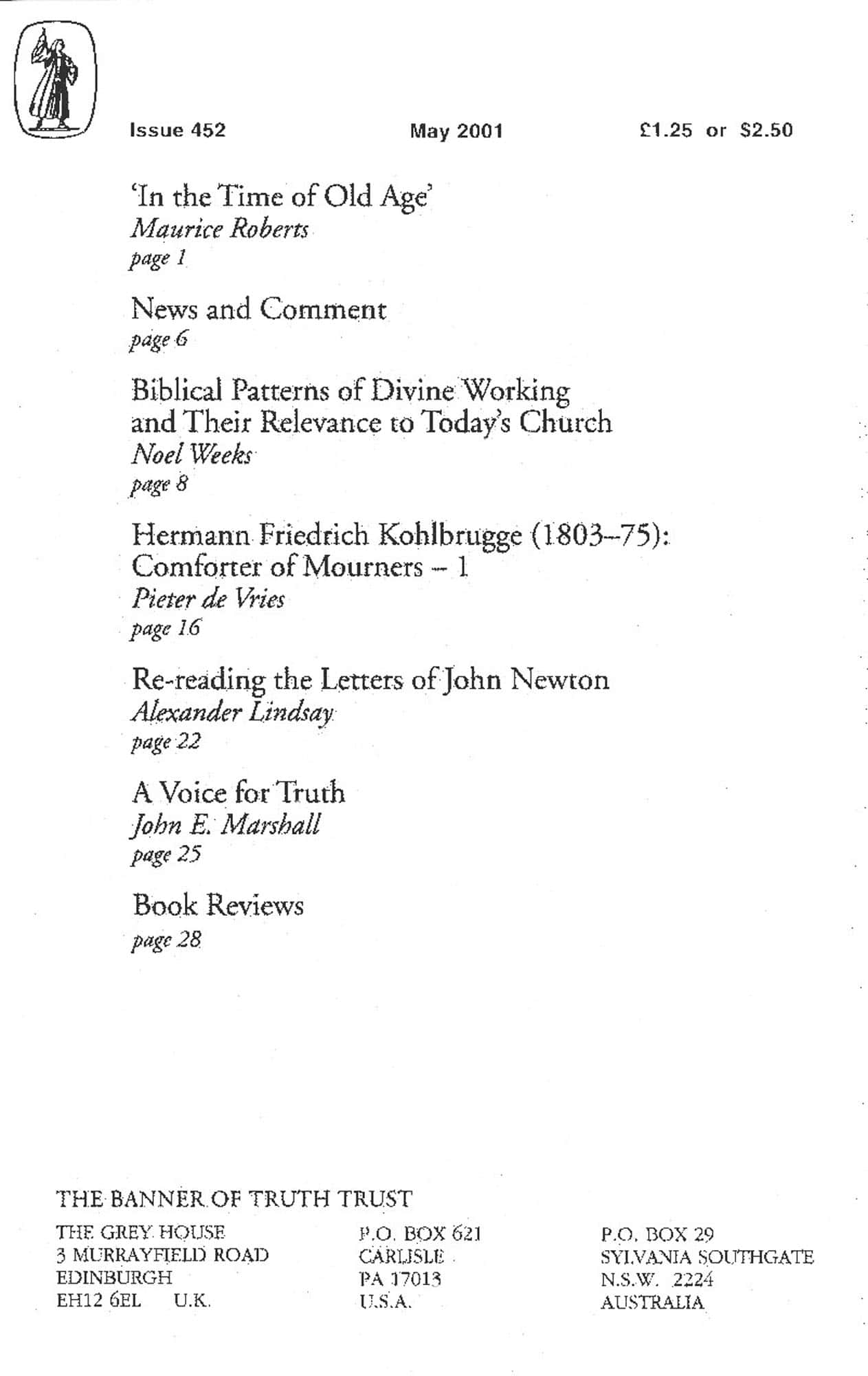| Re-reading the letters of John Newton — Lindsay, Alexander | 22-24 |