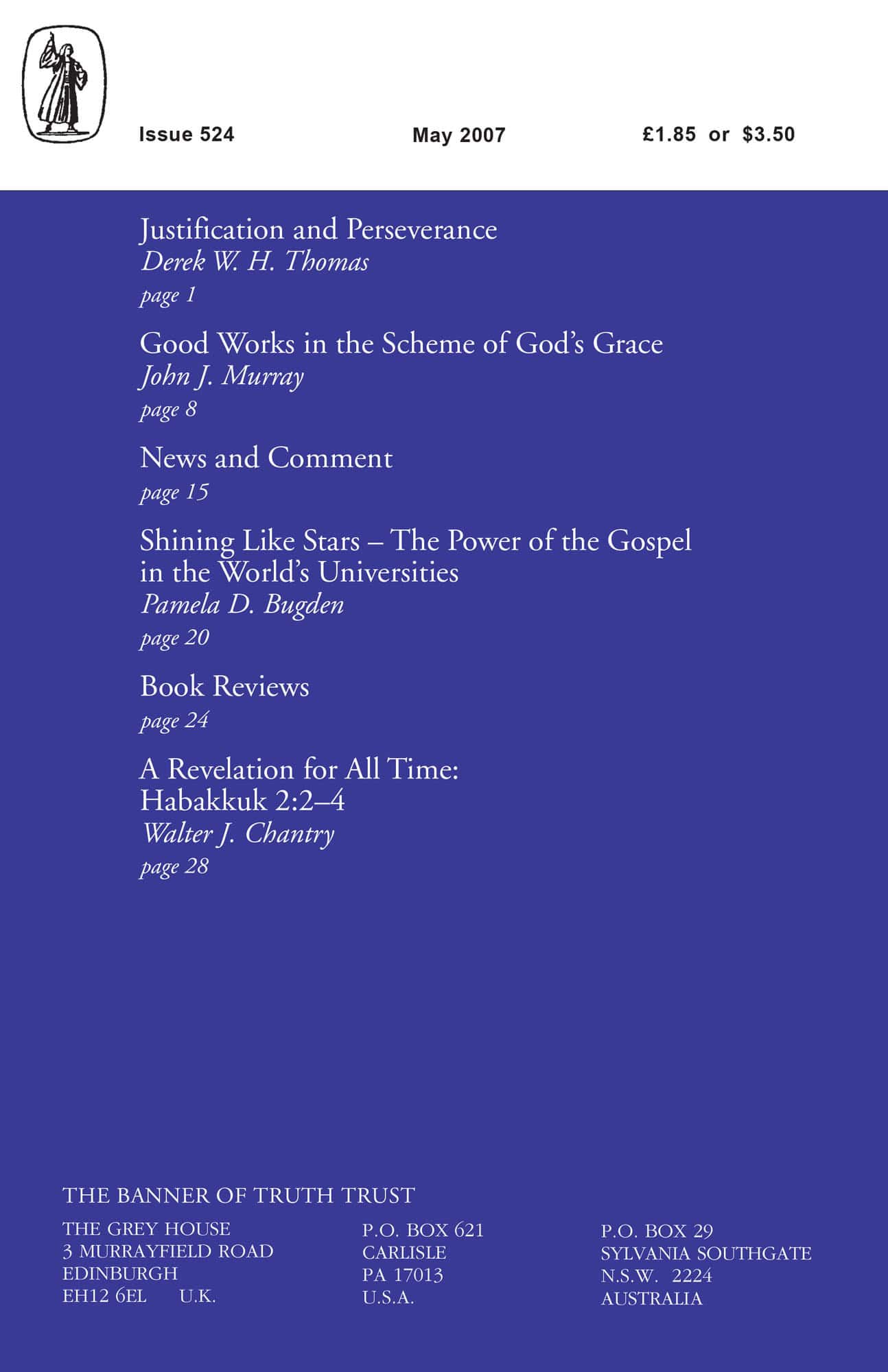 | Justification and Perseverance — Thomas, Derek W H | 1-7 |