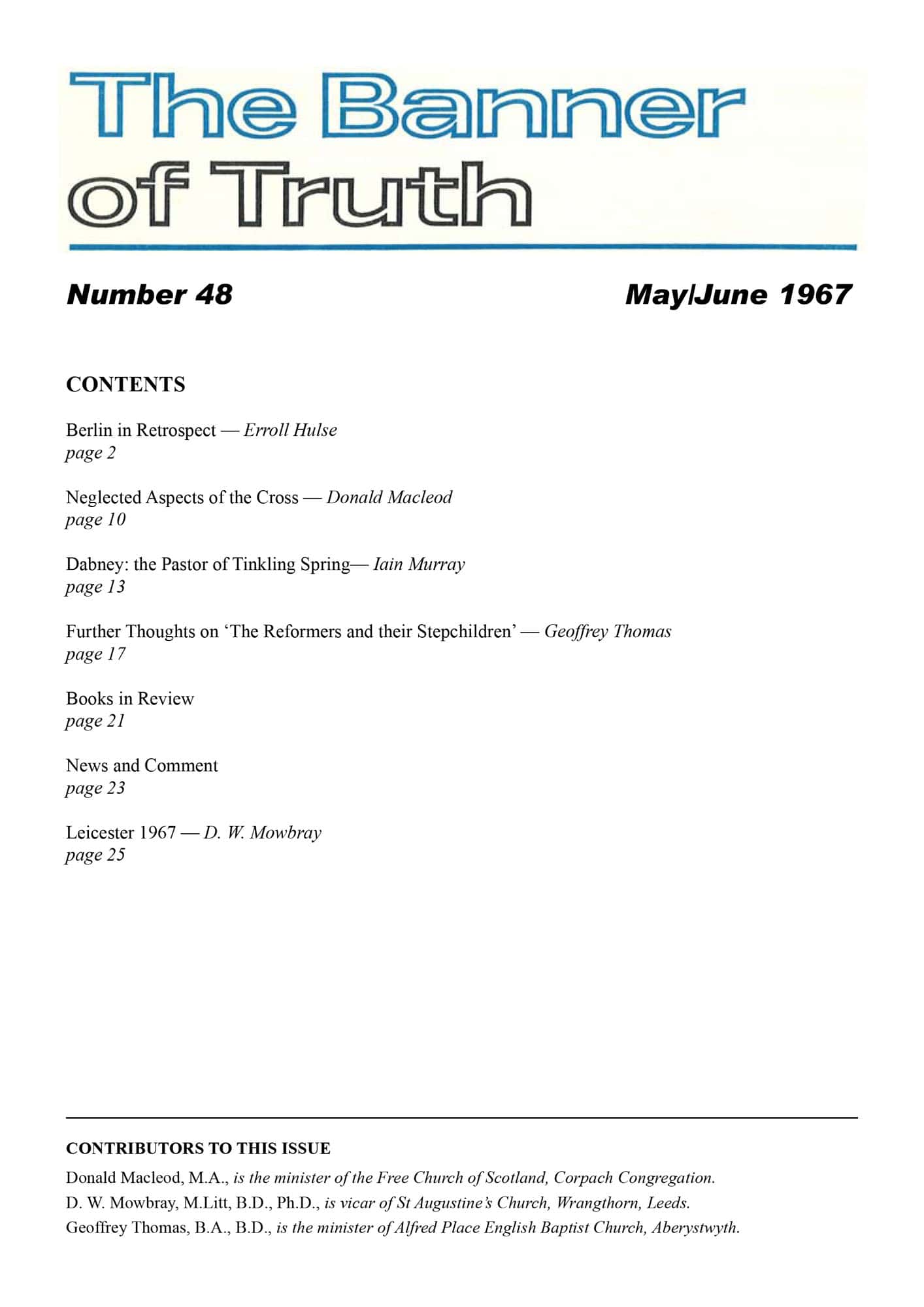 | Neglected aspects of the Cross — MacLeod, Donald | 9-11 21 |