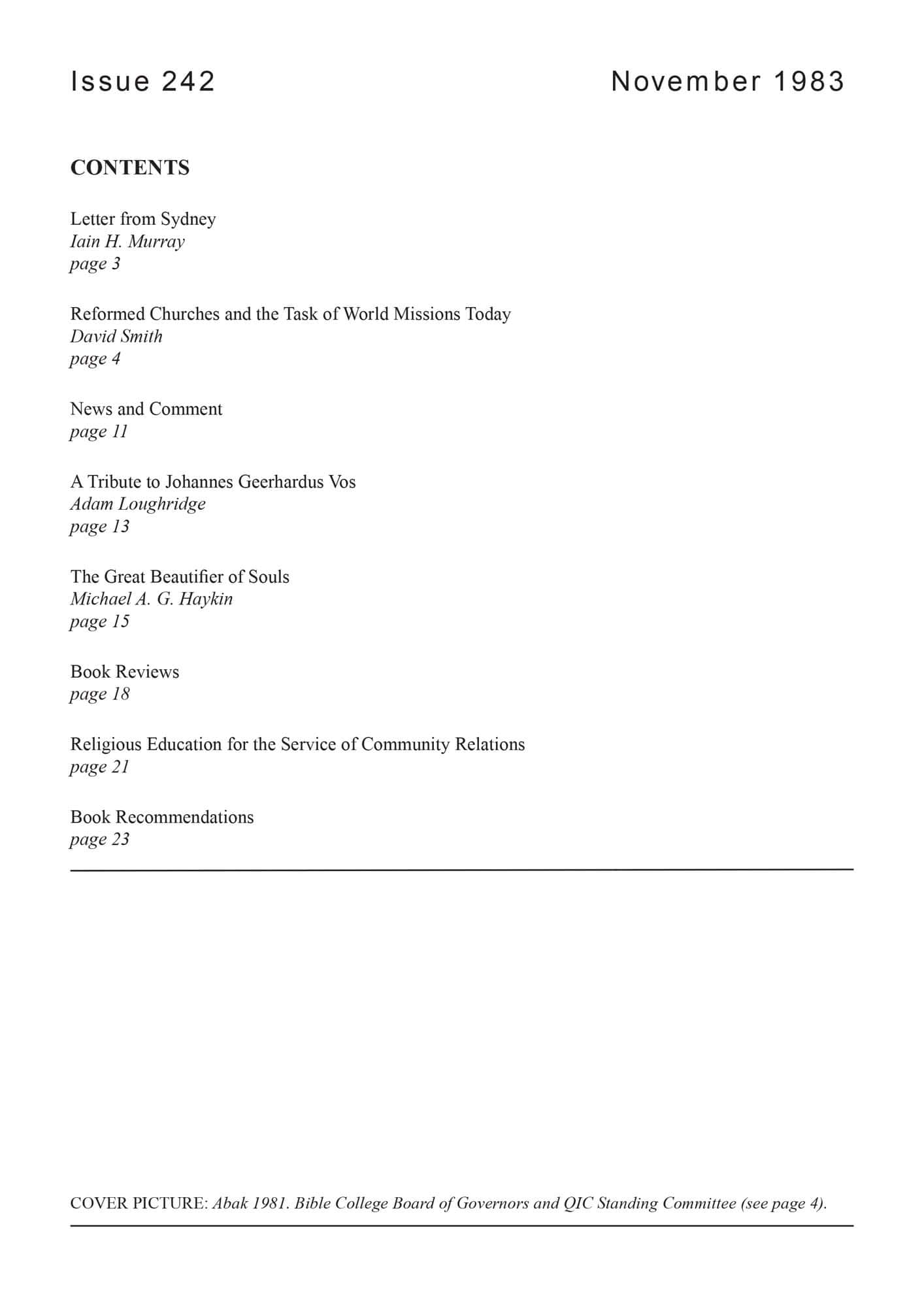 | Letter from Sydney (4) — Murray, Iain H | 1-2 |