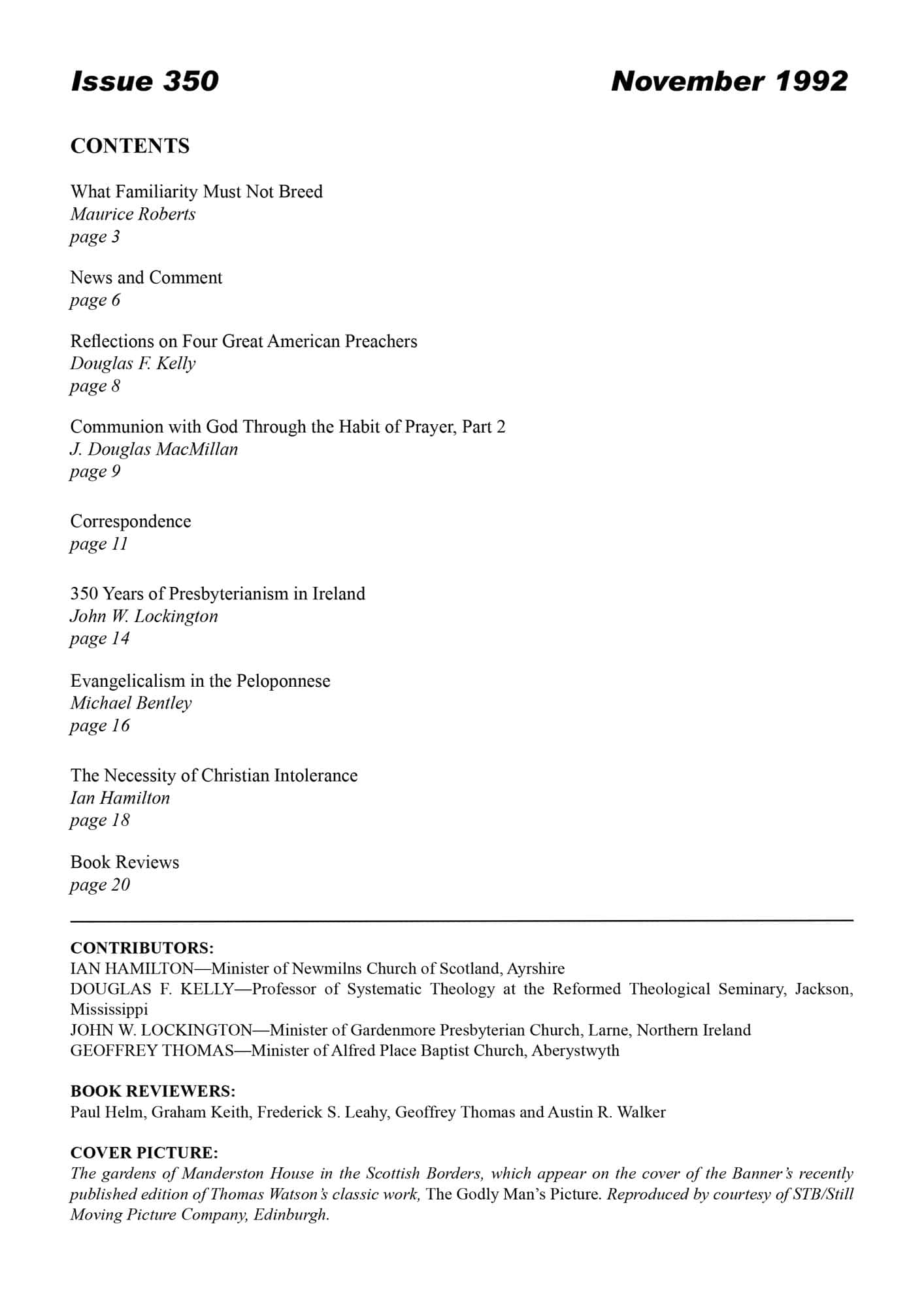 | Necessity of Christian Intolerance — Hamilton, Ian | 25-27 |