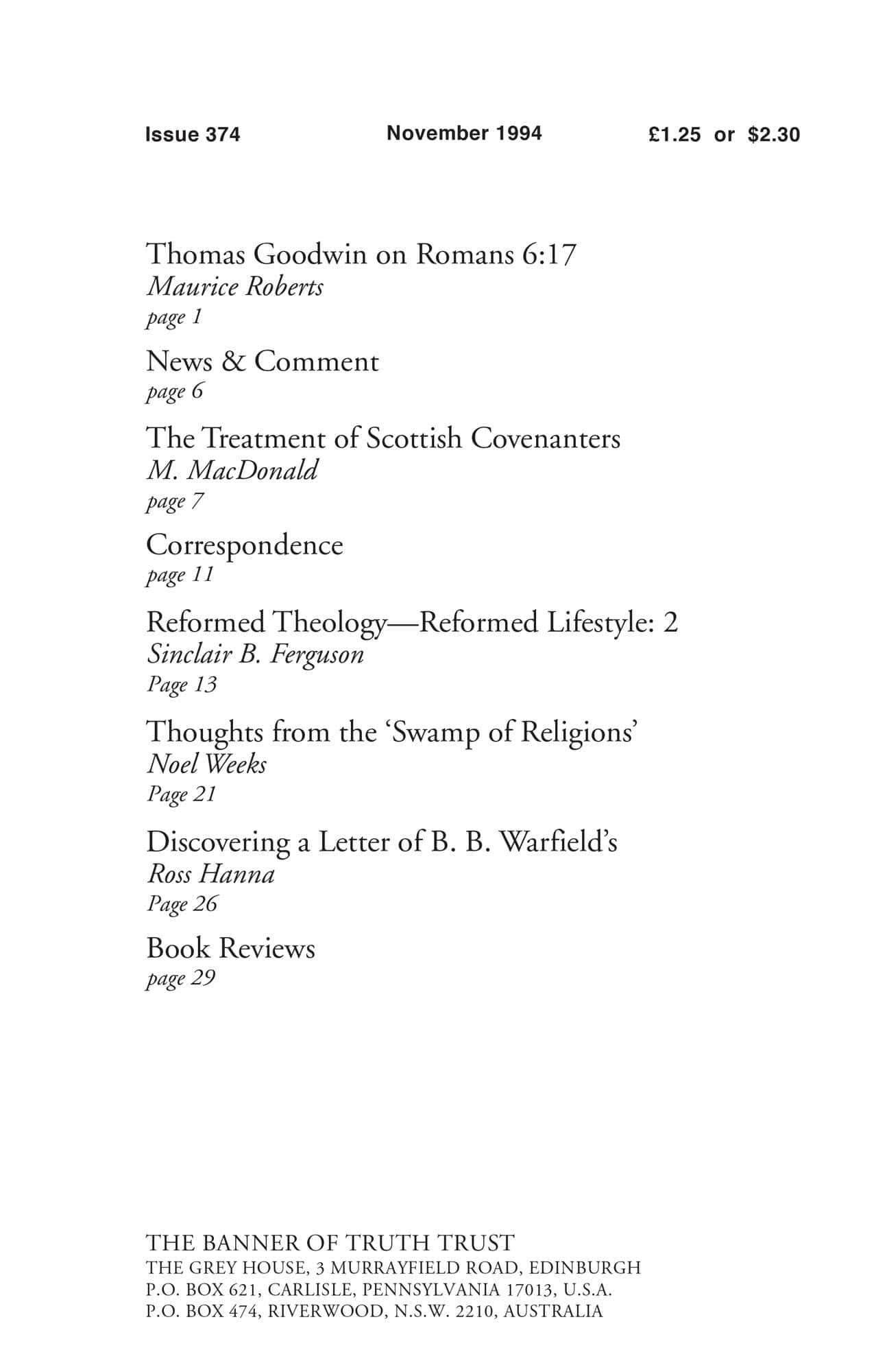 Subscribe to the Banner of Truth Magazine for 11 edifying issues each year (including summer double issue).