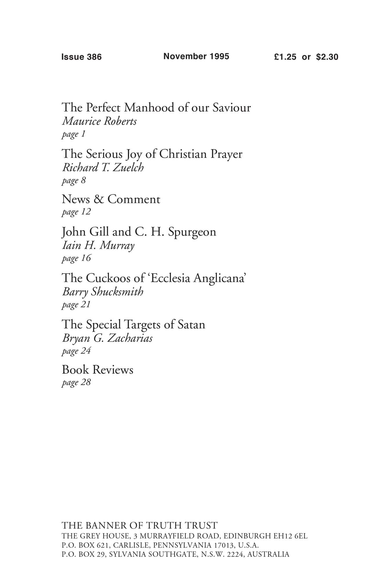 | John Gill and C. H. Spurgeon — Murray, Iain H | 16-20 |