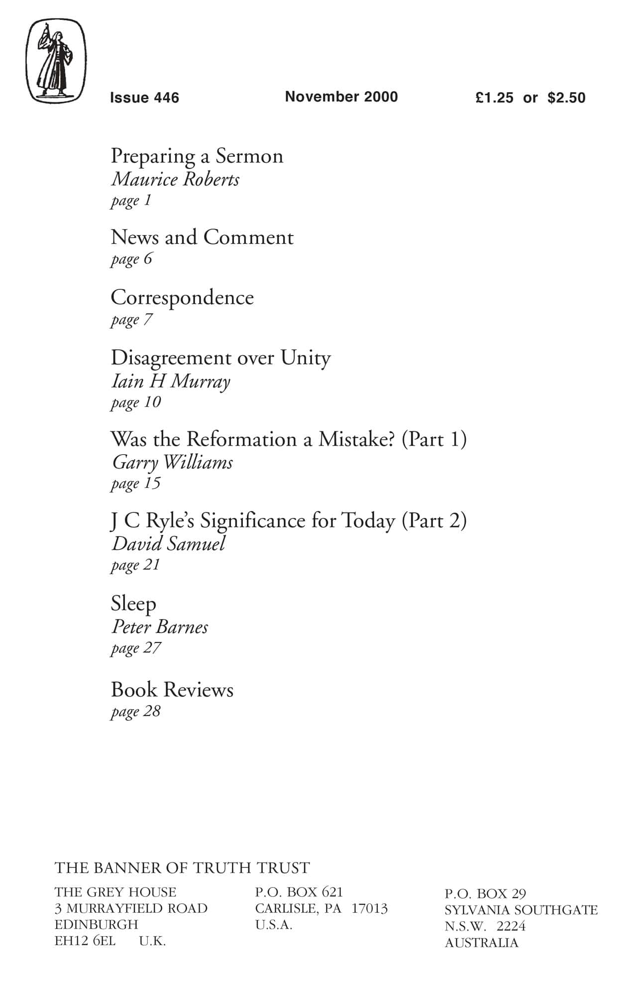 | Disagreement over Unity — Murray, Iain H | 10-14 |