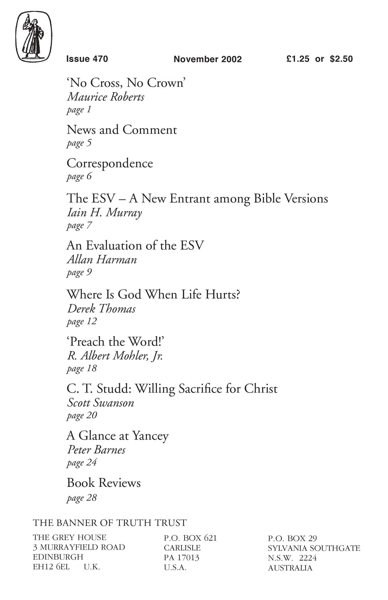 | English Standard Version: A New Entrant Among Bible Versions — Murray, Iain H | 7-9 |