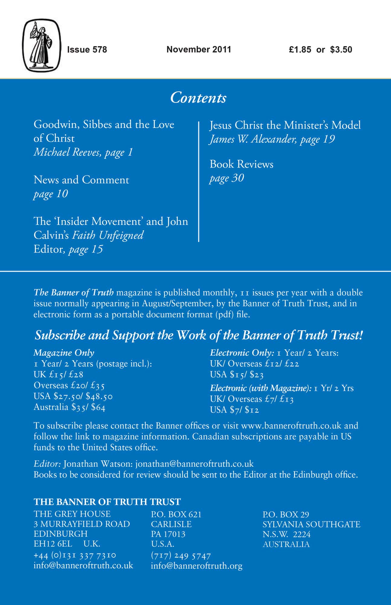 Subscribe to the Banner of Truth Magazine for 11 edifying issues each year (including summer double issue).