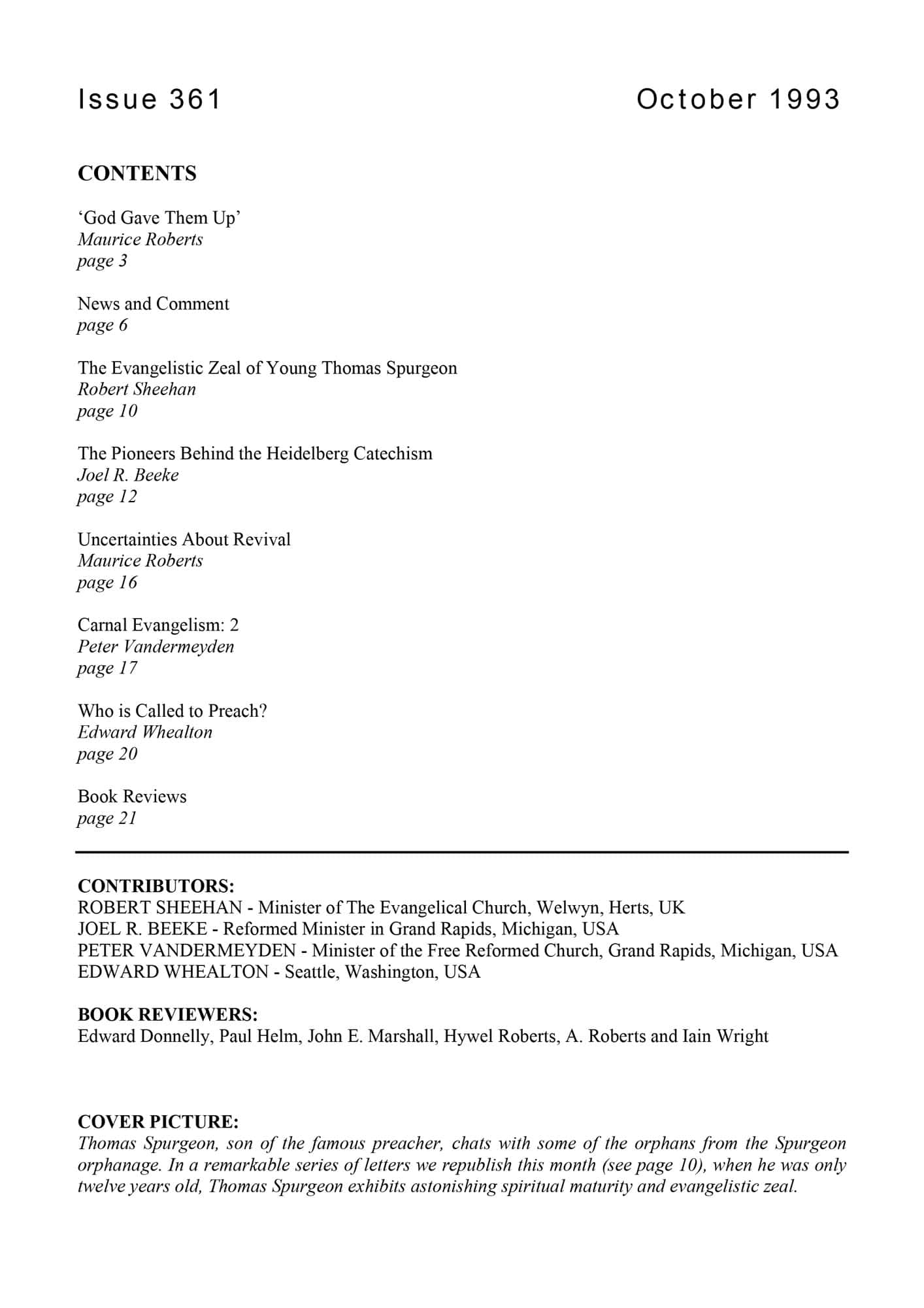 | Evangelistic Zeal of Young Thomas Spurgeon — Sheehan, Robert | 9-12 |