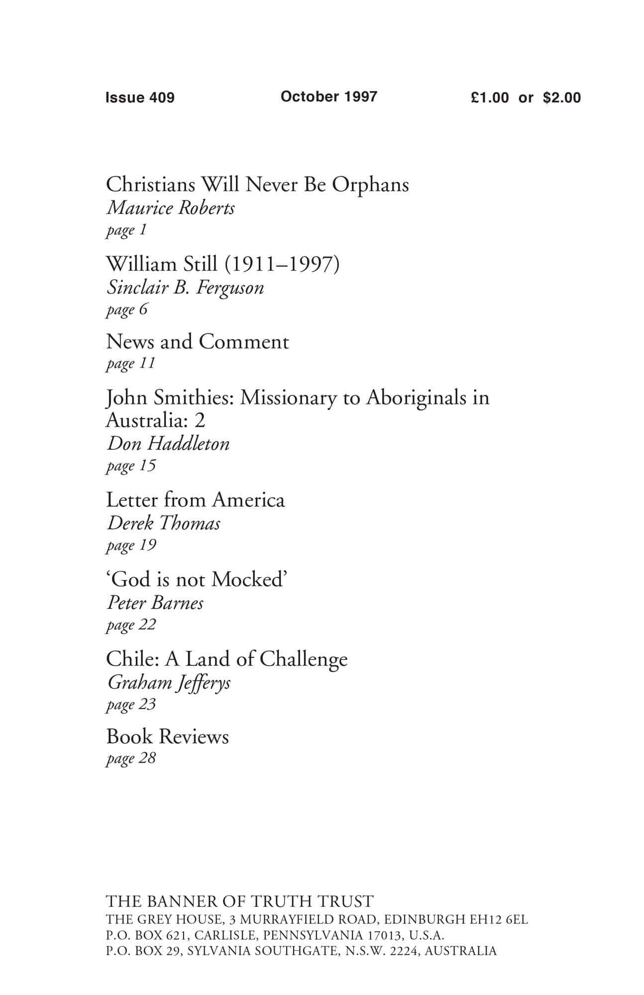 | Letter from America — Thomas, Derek | 19-21 |