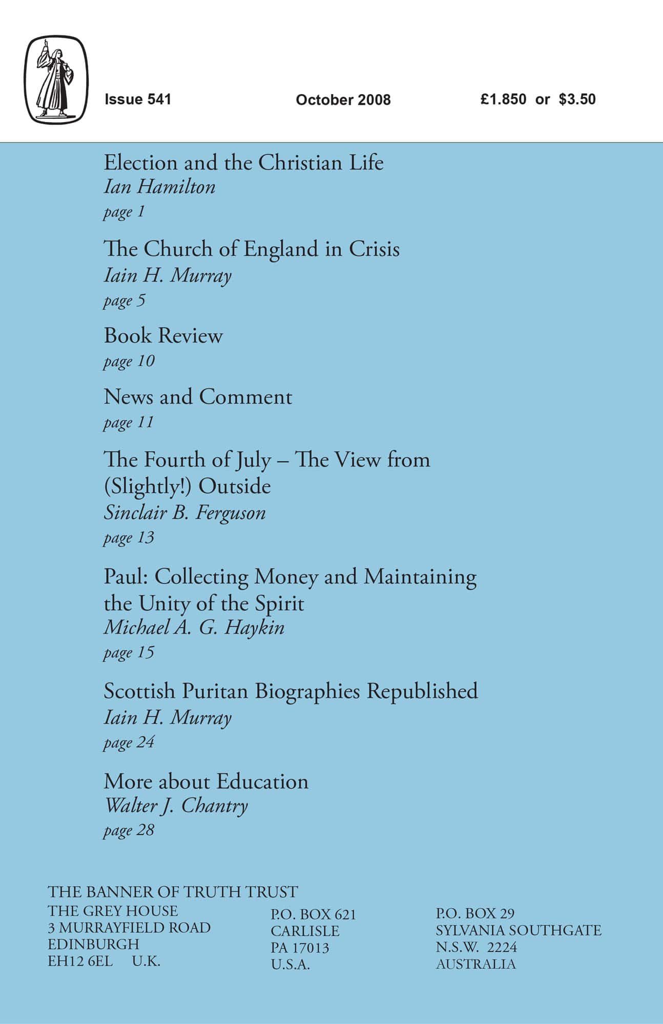 | Church of England Crisis — Murray, Iain H | 5-10 |
