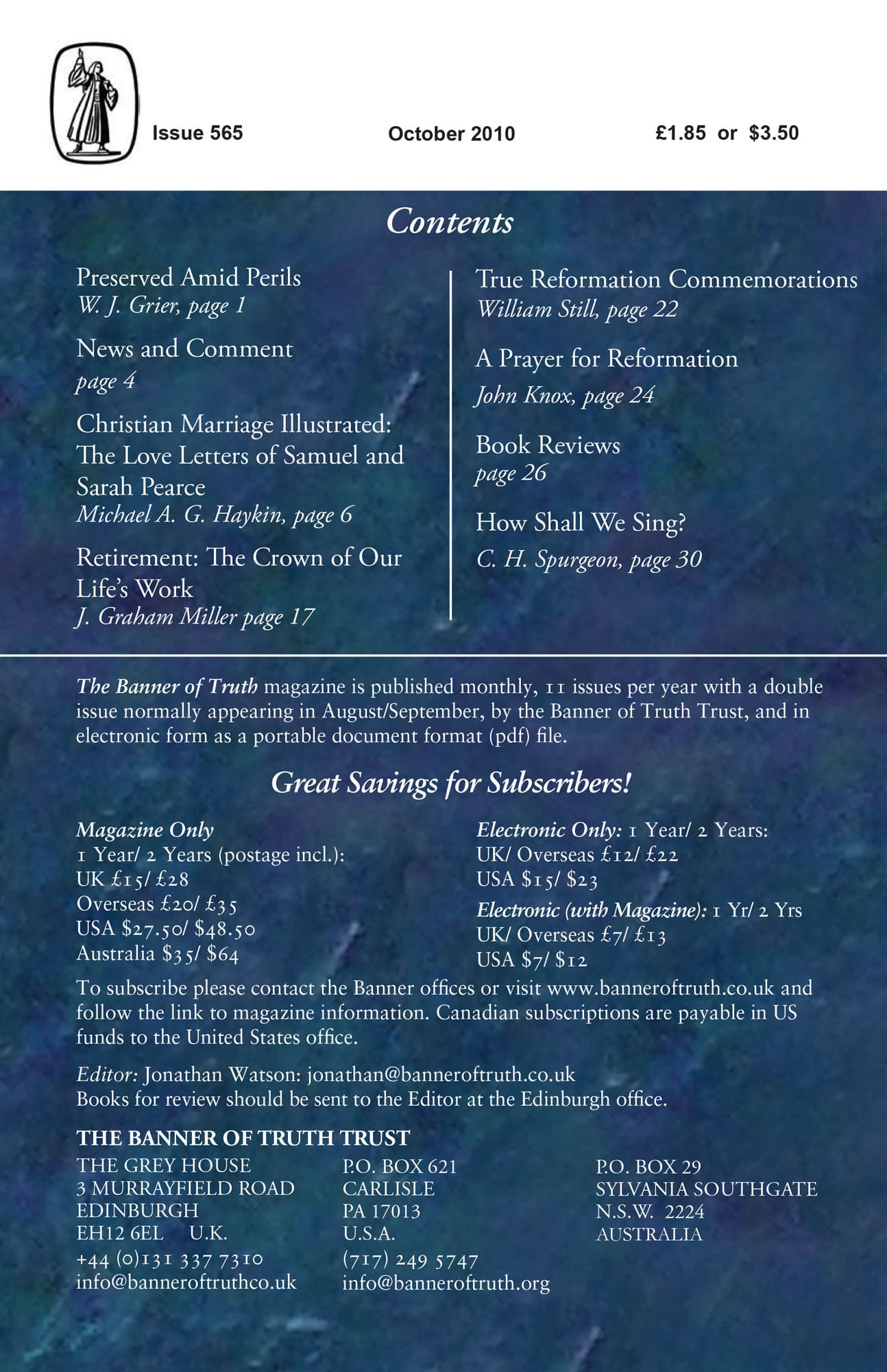 Subscribe to the Banner of Truth Magazine for 11 edifying issues each year (including summer double issue).