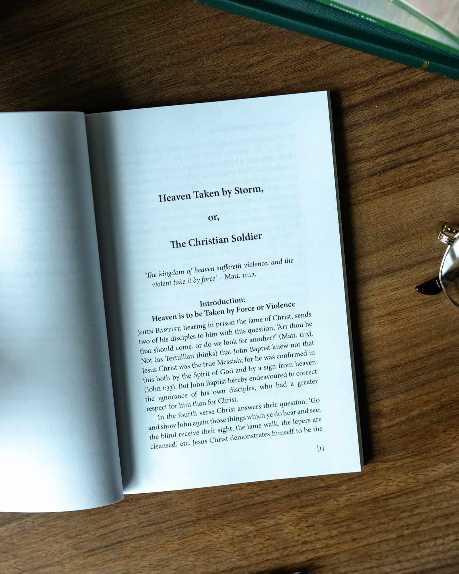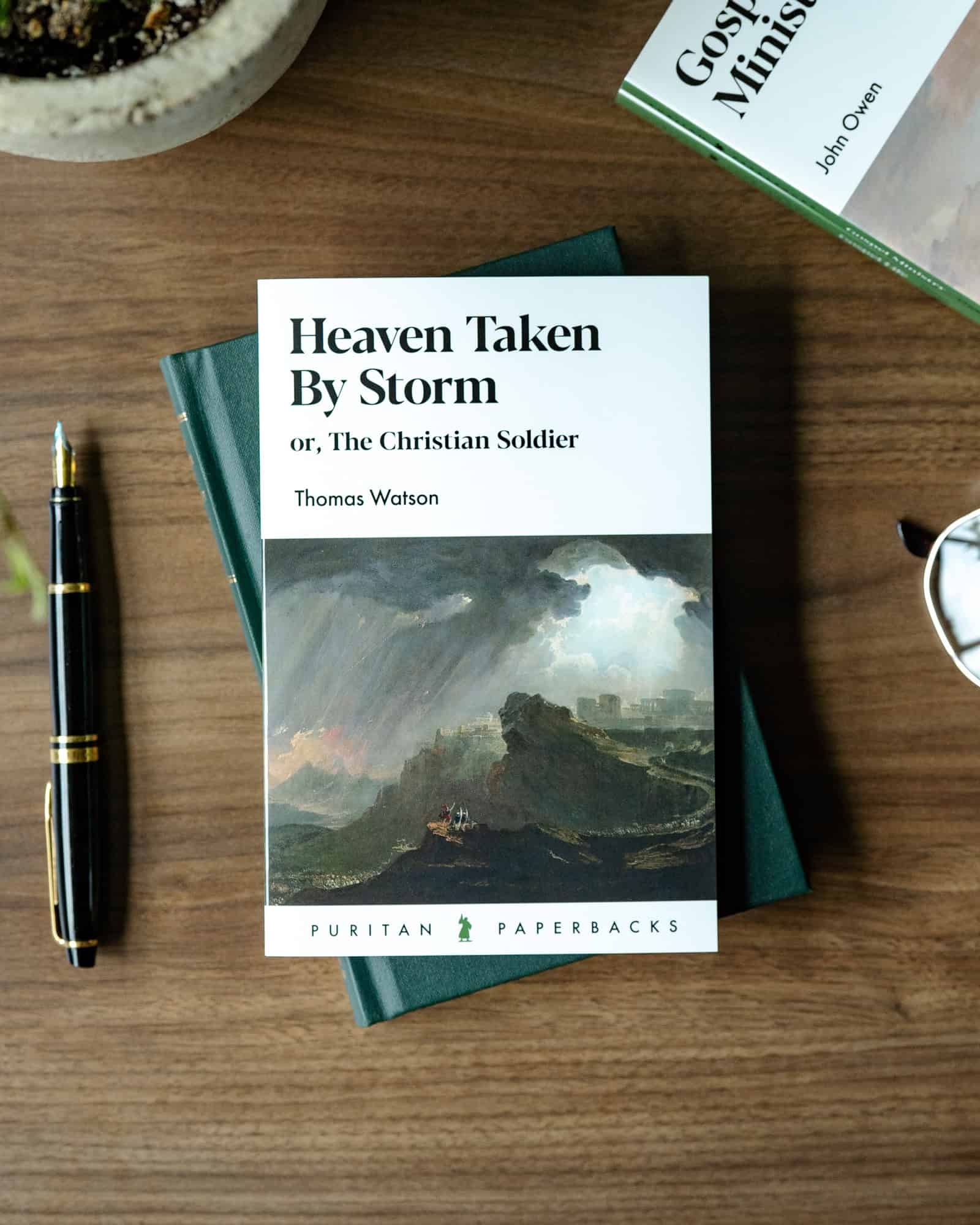 Heaven Taken by Storm, or, The Christian Soldier is a call to arms. In it Thomas Watson expounds and applies, in his own unique and much-loved style, the words of the Lord Jesus in Matthew 11:12: ‘And from the days of John the Baptist until now the kingdom of heaven suffereth violence, and the violent take it by force.’ ‘Heaven,’ he says, is like a ‘town or castle that holds out in war, and is not taken but by storm. … Though heaven be given us freely, yet we must contend for it.’ What that means for the believer forms the substance of this book. The author shows us the nature of this ‘holy violence’ – ‘resolution of will, vigour of affection, strength of endeavour.’ His aim throughout is to awaken the reader to the urgency of the gospel’s call. ‘Our work is great, our time short, our master urgent; we have need therefore to summon together all the powers of our souls, and strive as in a matter of life and death, that we may arrive at the kingdom above: we must not only put forth diligence, but violence.’