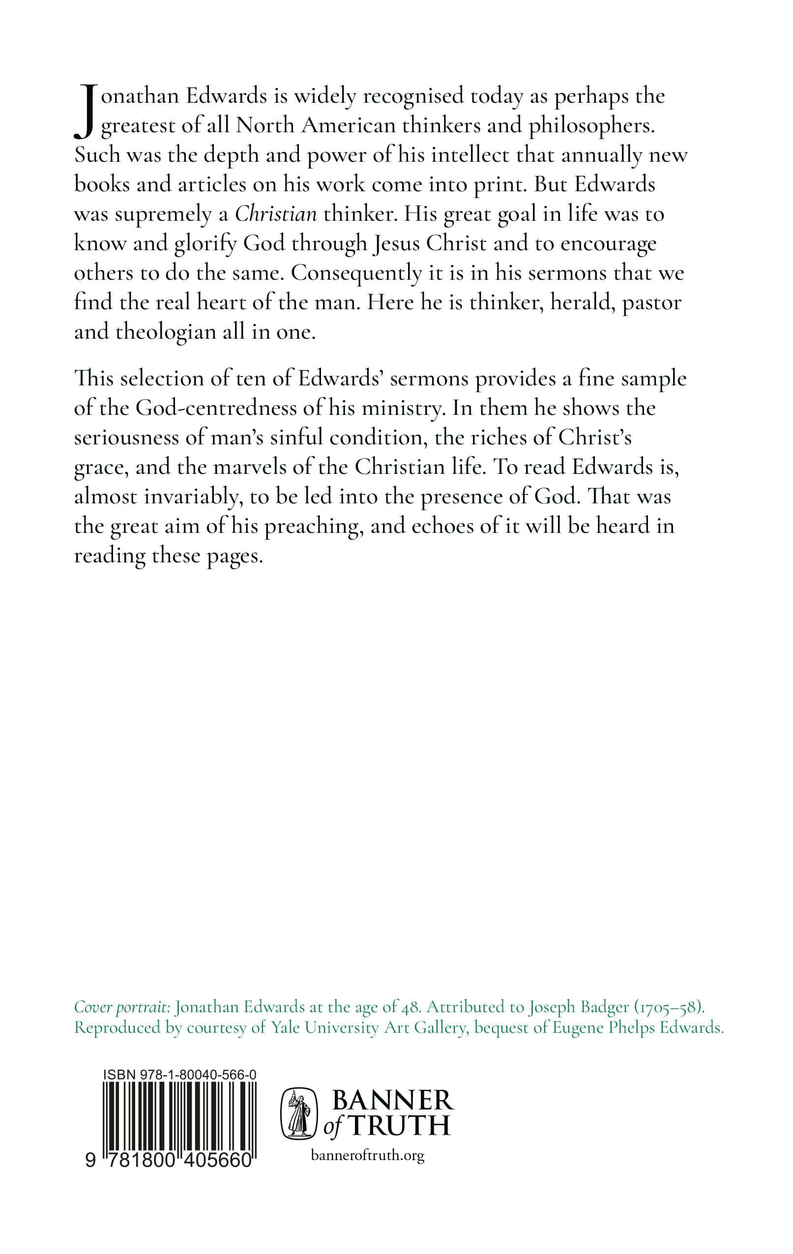 Jonathan Edwards is widely recognized today as perhaps the greatest of all North American thinkers and philosophers. Such was the depth and power of his intellect that annually new books and articles on his work come into print. But Edwards was supremely a Christian thinker. His great goal in life was to know and glorify God through Jesus Christ and to encourage others to do the same. Consequently it is in his sermons that we find the real heart of the man. Here he is thinker, herald, pastor and theologian all in one.