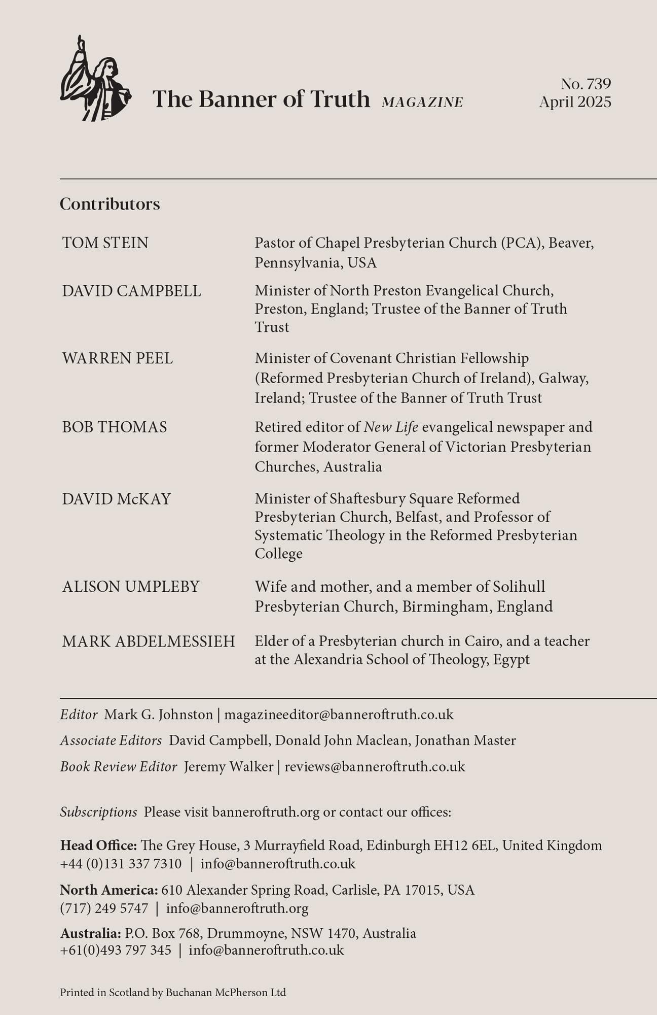 Table of Contents The Covenant of Redemption , George Whitefield The Inerrancy of the Scriptures in the Bible and Church History , Michael A. G. Haykin News and Comment Is Bodily Healing in the Atonement? , W. J. McDowell Paradoxes , Peter Barnes Book Reviews